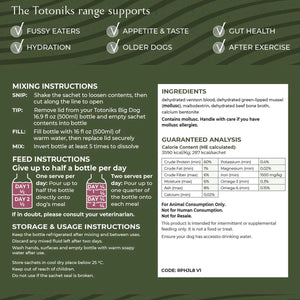 Each sachet blends New Zealand grass-fed venison blood with green-lipped mussel, nature’s own powerhouse of glucosamine, chondroitin, MSM, and phospholipids. Together, they help support healthy cartilage, smooth movement, and the body’s natural repair processes, while also keeping your dog hydrated and happy.