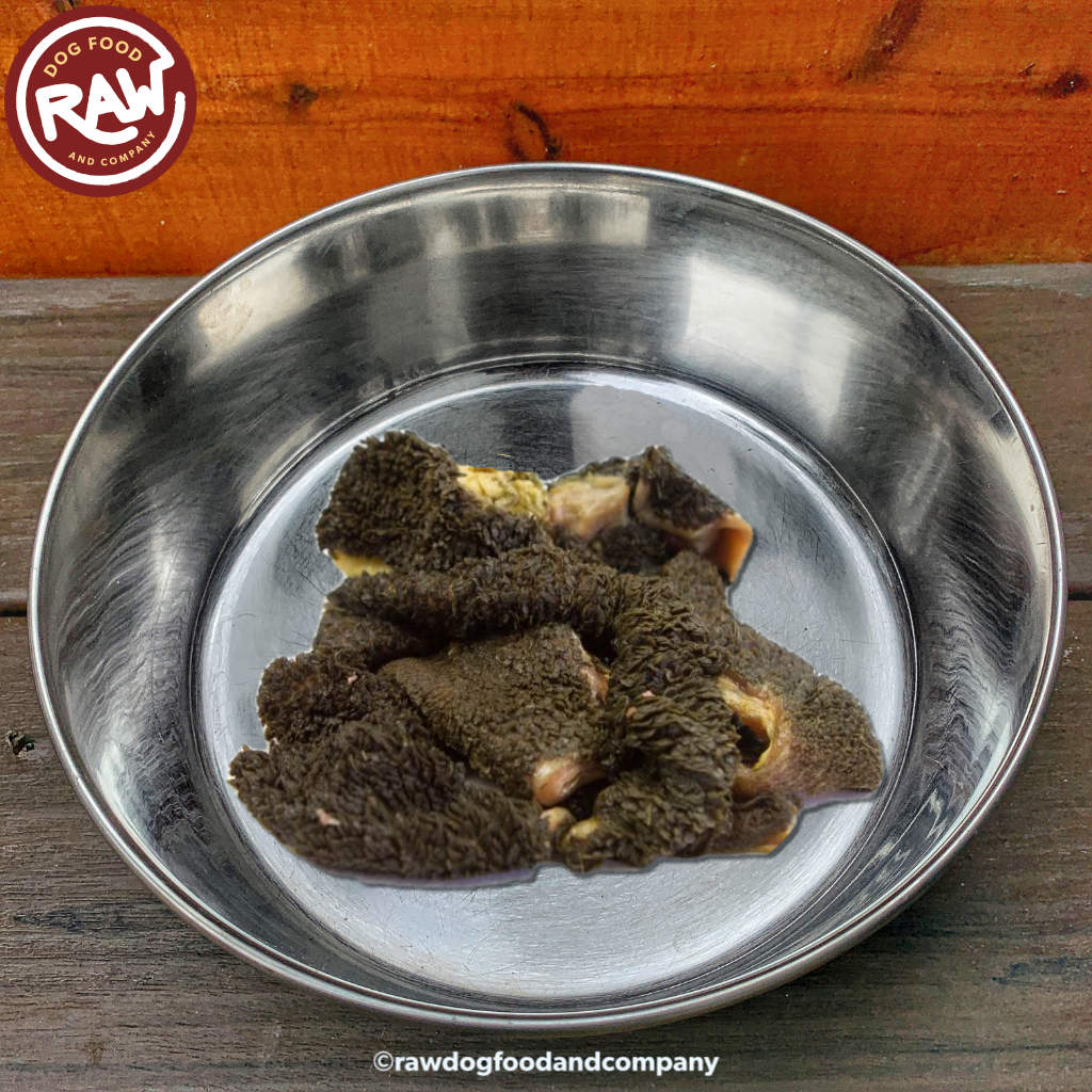Tripe is a nutrient-rich ingredient that offers a myriad of health benefits for your four-legged companion. Our tripe blends are a perfect balance of animal protein, bone, organs, and beneficial fats. What sets Tripe apart is its abundance of naturally occurring probiotics and digestive enzymes, which promote optimal gut health and aid in nutrient absorption. By incorporating tripe into your dog's diet, you're supporting their overall well-being from the inside out.